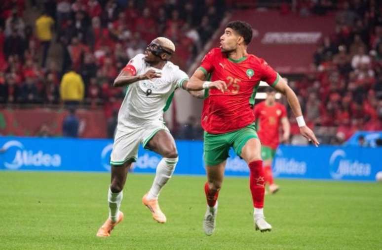 O segundo tempo começou novamente com Marrocos em cima, buscando o gol, com a Nigéria se defendendo. Ezzalzouli quase abriu o placar em finalização que Nwabali pegou. O jogador do Betis passou perto mais uma vez em seguida, mas o goleiro nigeriano estava atento.
