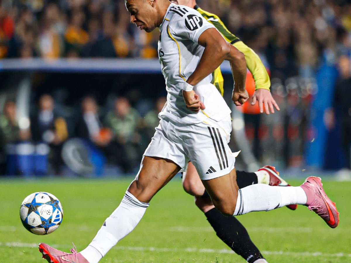 A pressão dos Merengues surtiu efeito e, aos 24 minutos, Mastantuono sofreu um pênalti, cometido após ser derrubado por Kalmurza. Na cobrança, Mbappé bateu com categoria para abrir o marcador no Ortalyc Stadion. O maior campeão da Champions até podia ter ampliado na primeira etapa, mas não conseguiu aproveitar suas chances.