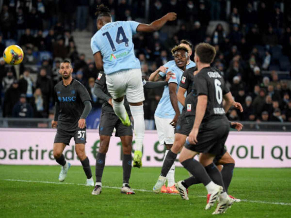 A partida começou com a Lazio em cima, aproveitando que o Napoli não levou força máxima a campo. Aos 20′, Pedro recebeu em profundidade na área e driblou o goleiro Caprile, que o derrubou: pênalti marcado. Zaccagni foi para a bola e parou no próprio arqueiro napolitano. A redenção da Lazio veio aos 31′, após escanteio cobrado da esquerda. Gigot cabeceou para o meio da área e Noslin, completamente livre, testou para anotar o primeiro gol do jogo e dar início a seu show particular.