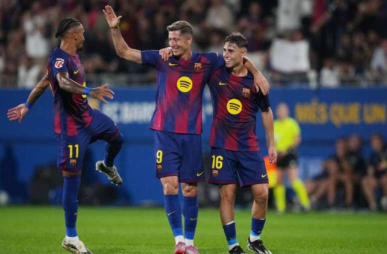 O modesto Estádio Johan Cruyff, que fica dentro do CT do clube e tem capacidade para apenas 6 mil torcedores, recebeu a partida. Isso porque o Camp Nou ainda segue em reformas. Fermín López, Raphinha e Lewandowski, com dois gols cada, garantiram a festa da torcida culé.