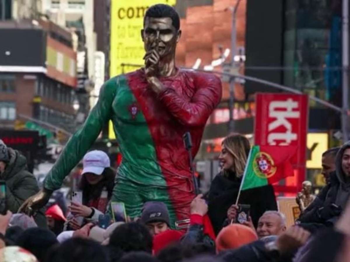 Cristiano Ronaldo ganha estátua na Times Square em seu aniversário de 40 anos