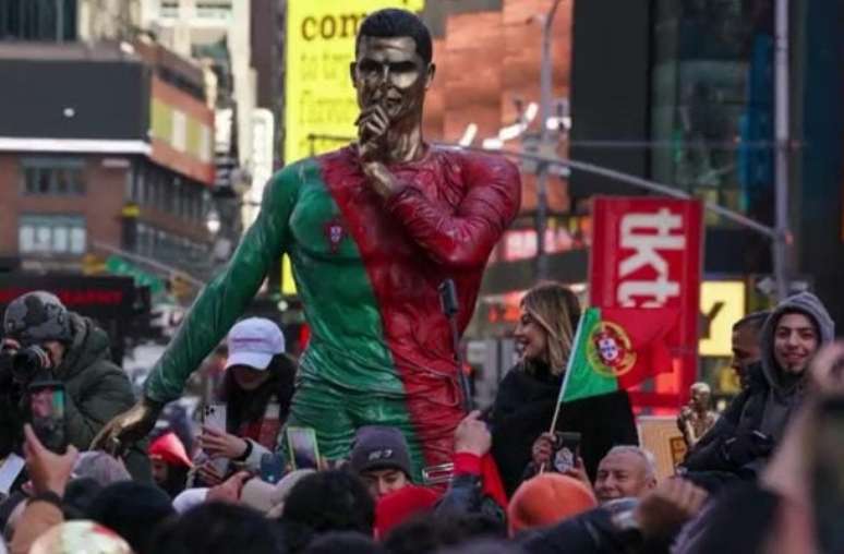 Um dos maiores jogadores da história do futebol mundial completa 40 anos nesta quarta-feira (5). Trata-se de Cristiano Ronaldo, que ganhou uma estátua em sua homenagem na icônica Times Square, em Nova York. Sendo assim, a imagem possui as cores da seleção portuguesa e exaltam a carreira do atleta.