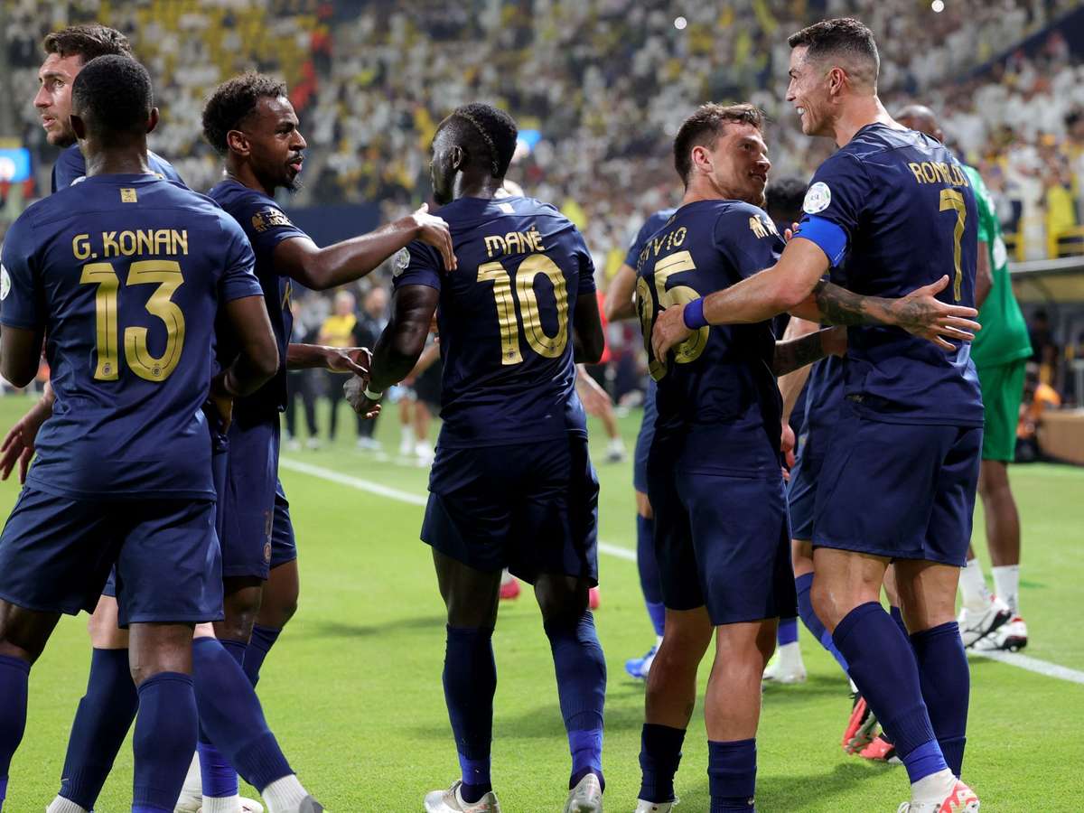 Melhor desde os primeiros minutos, o Al-Nassr não demorou muito tempo para construir a vitória. Após tentativas de Brozović e Ghareeb, ambas defendidas pelo goleiro, Cristiano Ronaldo decidiu de forma positiva ao marcar dois gols, ambos em cobrança de pênalti. O primeiro foi marcado aos 12 minutos e o segundo aos 37. Durante este período, muitas faltas e impedimentos. O roteiro era bem formidável aos donos da casa, que garantiam a vitória com relativa facilidade. A situação ficou ainda melhor aos 40, quando Cristiano Ronaldo acionou Sadio Mané para marcar o terceiro.