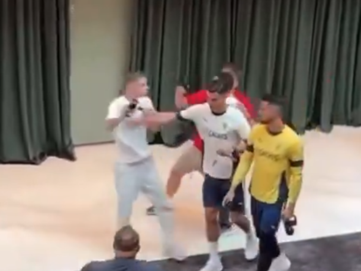Vídeos que circulam nas redes sociais mostram o momento do empurrão. As imagens foram registradas em um hotel em Yerevan, na Armênia, onde os lusitanos estão concentrados. CR7 aparece caminhando ao lado do goleiro Diogo Costa.
