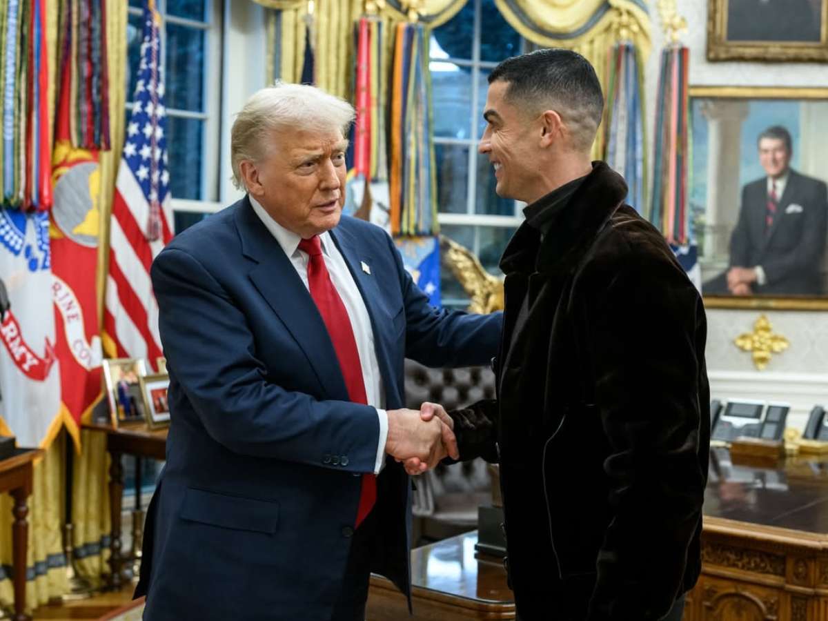 Cristiano Ronaldo viveu uma noite de gala em Washington D.C. nesta terça-feira (18). O atacante português visitou a Casa Branca, reencontrou o Salão Oval após sete anos sem pisar nos Estados Unidos e foi recebido pelo presidente Donald Trump, que o presenteou com uma chave dourada da residência oficial.
