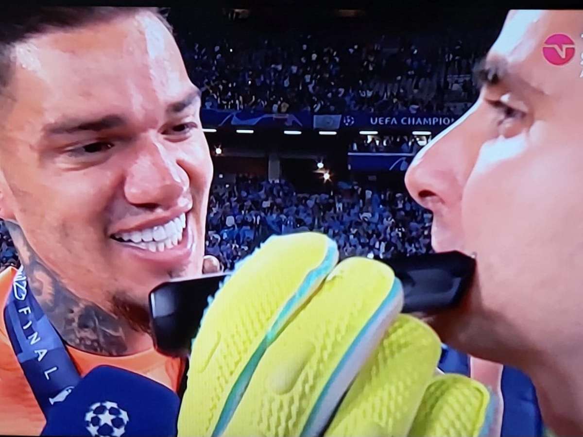 Uma cena inusitada envolvendo o goleiro Ederson ocorreu no Estádio Ataturk, na Tuquia, neste sábado (10/6). O goleiro Ederson, um dos melhores em campo, tinha feito uma aposta com o repórter da TNT Fred Caldeira. Se o Manchester City fosse campeão da Champions batendo a Inter de Milão, o goleiro tiraria o cavanhaque e o jornalista o grande bigode. O City venceu o jogo por 1 a 0. Só que a promessa, a pedido do goleiro, foi cumprida…. dentro de campo, com o time aoinda levantando a taça e celebrando com a torcida!
