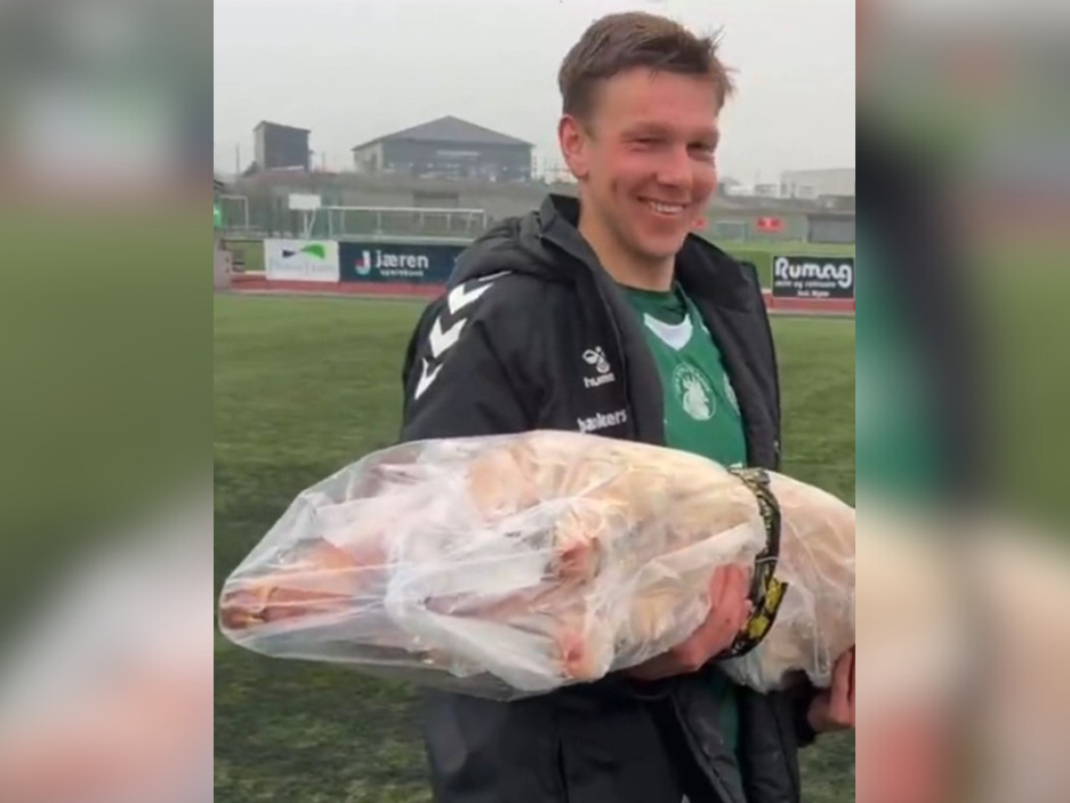 Eleito craque da partida, jogador recebe leitão assado como prêmio na Noruega