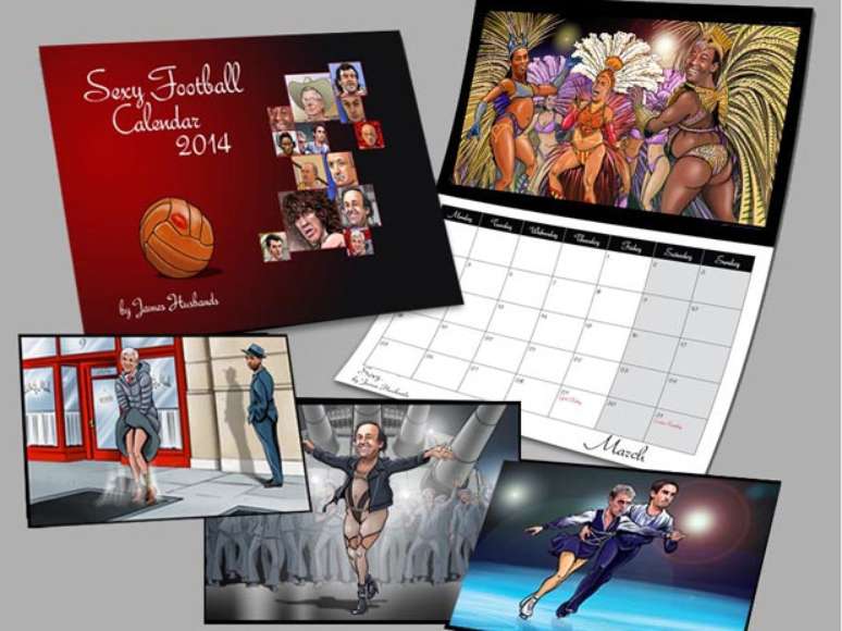 O cartunista inglês James Husbands usou personagens do esporte brasileiro para criar a edição 2014 do já famoso Calendário Sexy do Futebol, com ilustrações nada sensuais de personalidades do mundo da bola. O britânico desenhou caricaturas de Pelé, Ronaldo e Ronaldinho em um evento bastante estereotipado: o Carnaval.