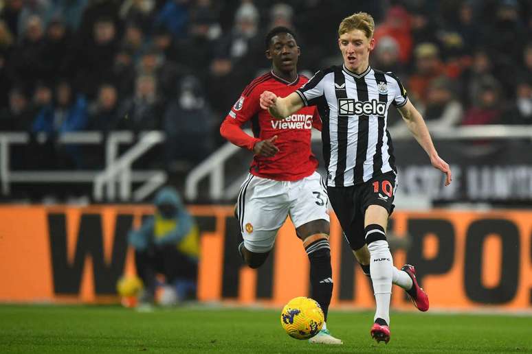 Com muita qualidade e rapidez nos passes, o Newcastle desde o início mostrou que queria muito a vitória sobre um de seus maiores rivais. E que na temporada passada o venceu na final da Copa da Inglaterra. Em cima, teve a bola e o dobro das finalizações dos Red Devils no primeiro tempo. Mas errou nos arremates. Almirón e Gordon perderam chances incríveis e Trippier mandou uma falta que bateu no travessão, na linha, mas saiu. No segundo tempo, veio o gol do time da casa aos dez minutos. Numa rápida troca de passes, o brasileiro Bruno Guimarães, que defende a Seleção, tocou para Trippier. O lateral cruzou sob medida para Gordon mandar para a rede.