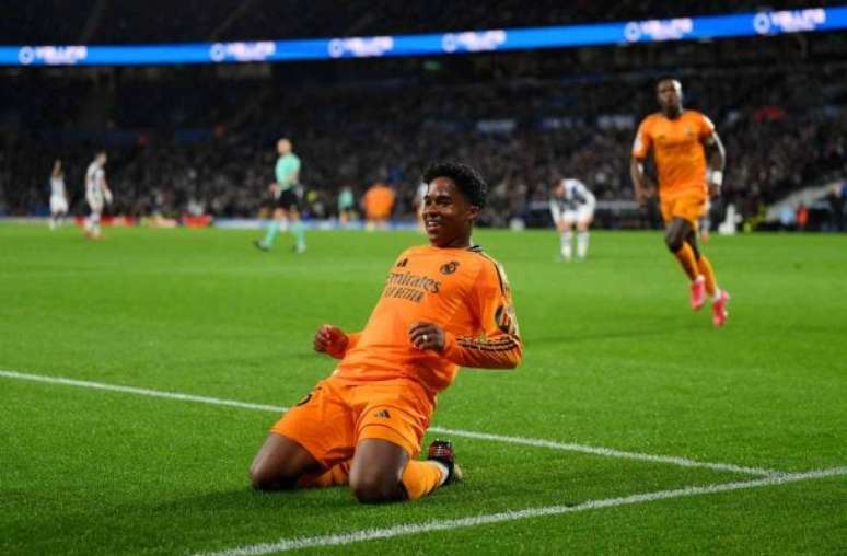 A imprensa espanhola não para de mencionar Endrick ao longo da semana. Desta vez, o site "Marca" destacou a ascensão do atacante, que passou de "substituto a herói". O jovem tem se destacado especialmente na Copa do Rei, torneio no qual o Real Madrid pode alcançar a final nesta terça-feira (1) caso empate com a Real Sociedad.