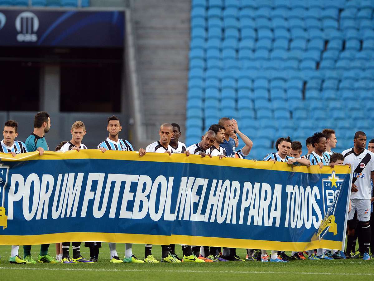 Para mostrar união os jogadores dos dois times seguraram a faixa, sem separação alguma por times