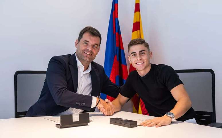 Na manhã desta terça-feira, o jovem Fermín Lopez assinou a renovação do seu contrato com o Barcelona, que será válido até junho de 2027. O meia de 20 anos é considerado uma promessa da base do clube e terá uma multa rescisória de 400 milhões de euros.