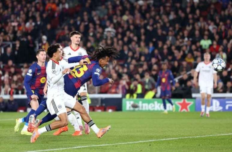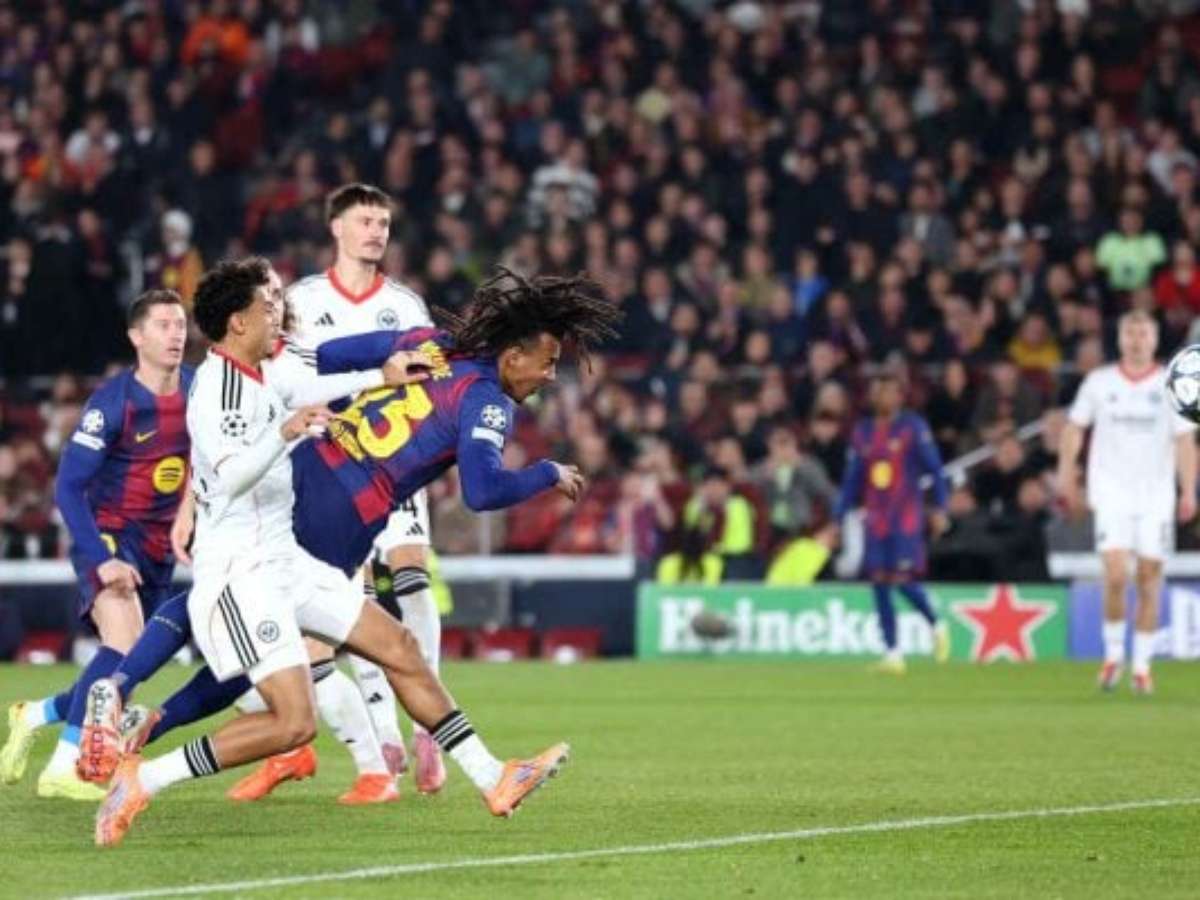 O Barcelona venceu o Eintracht Frankfurt por 2 a 1, de virada, nesta terça-feira (9), pela 6ª rodada da fase de liga da Champions 2025/26, que marcou o retorno do time ao Camp Nou na maior competição de clubes do futebol europeu. Knauff abriu o placar para os alemães no primeiro tempo, mas o lateral francês Jules Koundé marcou dois gols de cabeça na segunda etapa e confirmou a vitória.