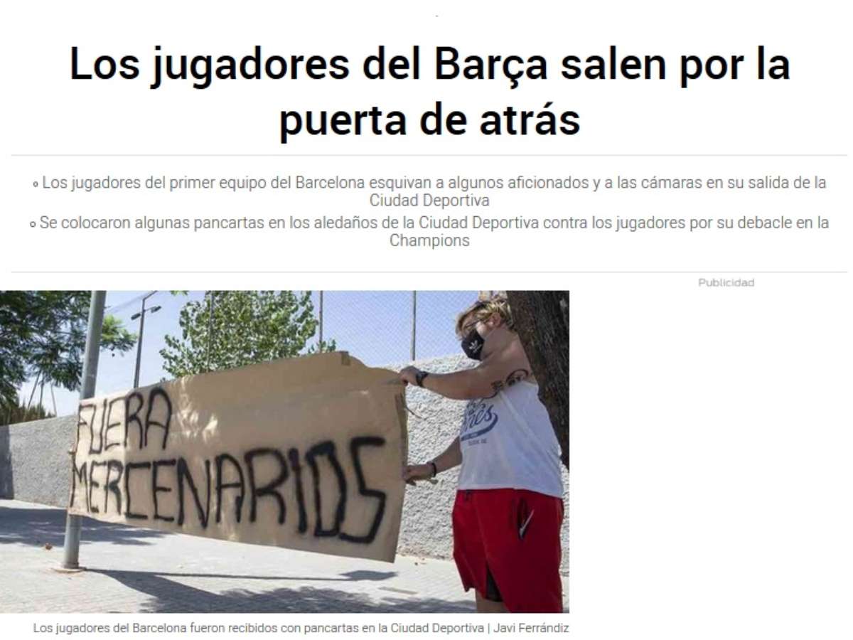 A histórica goleada sofrida diante do Bayern de Munique abriu uma grave crise no Barcelona. Neste sábado, o elenco desembarcou na cidade catalã e não escapou de protestos. Depois de deixar o Aeroporto de El Prat, o time seguiu rapidamente para a Ciudad Deportiva de Sant Joan Despí, onde viu protestos.