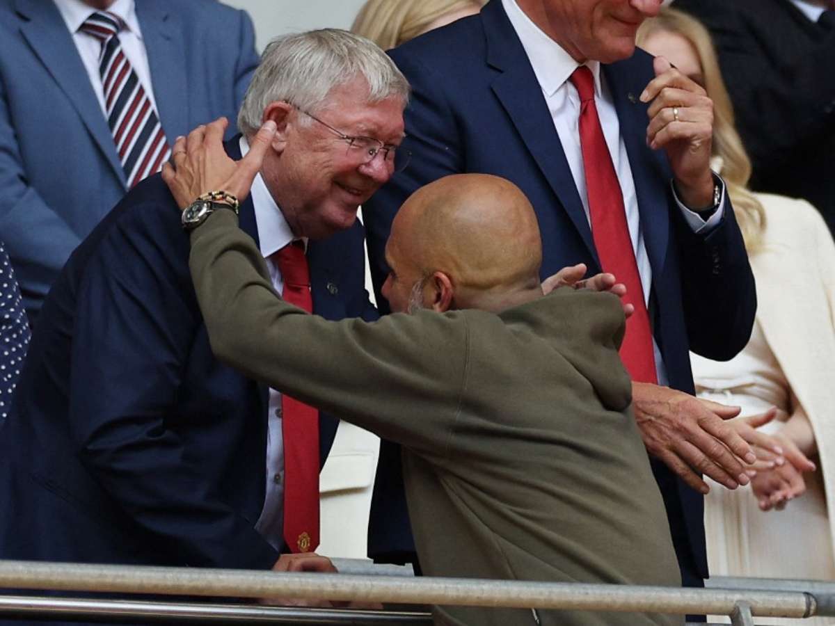 Guardiola cumprimentou Alex Ferguson após a conquista da Copa da Inglaterra no último sábado.