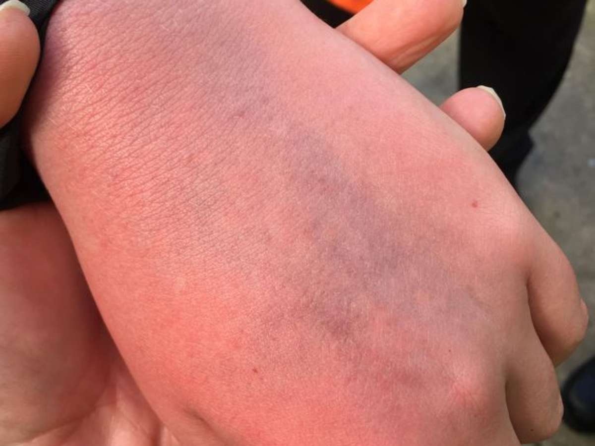 Mão de Jake após ter celular derrubado por Cristiano Ronaldo (Foto: Divulgação/Liverpool Echo)