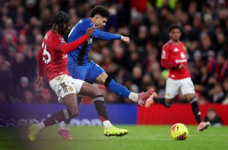 Em jogaço com grande emoção, times empatam por 4 a 4. Brasileiros Casemiro, Matheus Cunha e Evanílson marcam no Old Trafford