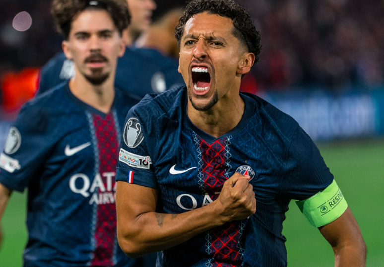 Marquinhos celebrou 12 anos de estreia no PSG marcando gol na vitória por 4 a 0 sobre a Atalanta, na abertura da Champions League, destacando o forte início do atual campeão no torneio.