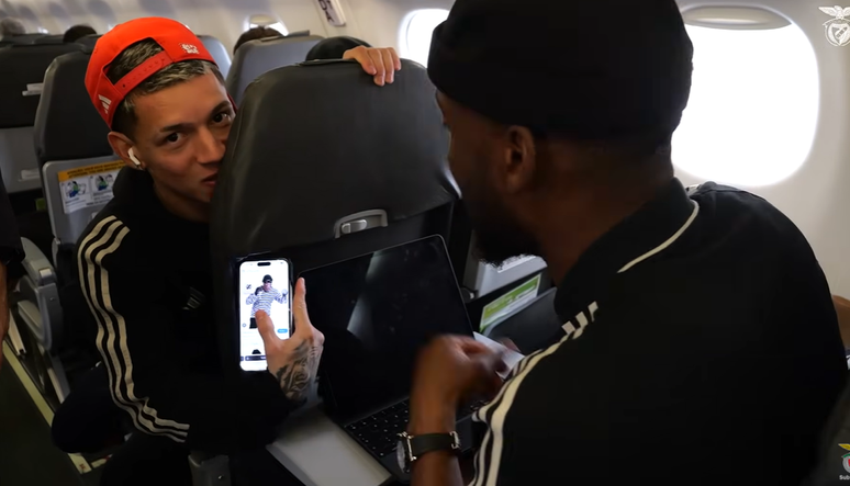 O registro aparece em um compilado da viagem da equipe para Açores, onde enfrentou o Santa Clara e venceu por 2 a 1. Sentado no banco à frente de Lukebakio no avião, Prestianni mostra uma foto de um ladrão vestindo uma touca, acessório usado pelo companheiro no momento.