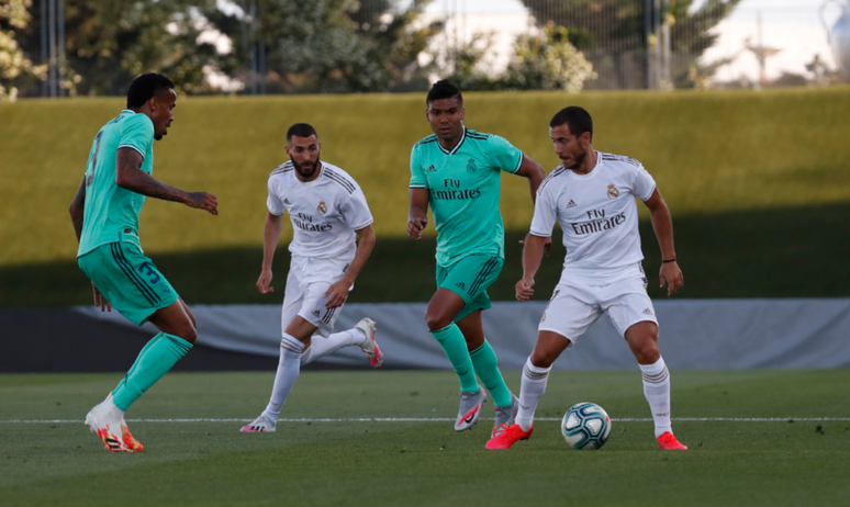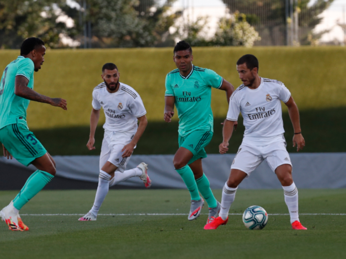 O Real Madrid organizou um amistoso interno, com direito ao uso dos uniformes de jogo, neste sábado no Estádio Alfredo Di Stéfano, onde mandará seus jogos na volta do Campeonato Espanhol, que não terá a presença de público.