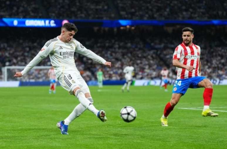 Mais um tropeço em casa do Real Madrid. O time merengue cedeu o empate por 1 a 1 para o Girona, nesta sexta-feira (10), na partida de abertura da 31ª rodada do Campeonato Espanhol 2025/26, e está cada vez mais longe do título nacional. Valverde abriu o placar, mas Lemar, em belo chute de fora da área, deixou tudo igual para os visitantes no Santiago Bernabéu. O goleiro Lunin e os atacantes Vini Jr e Mbappé foram os únicos titulares repetidos em relação ao jogo da última terça-feira (7), contra o Bayern, pelas quartas de final da Champions.