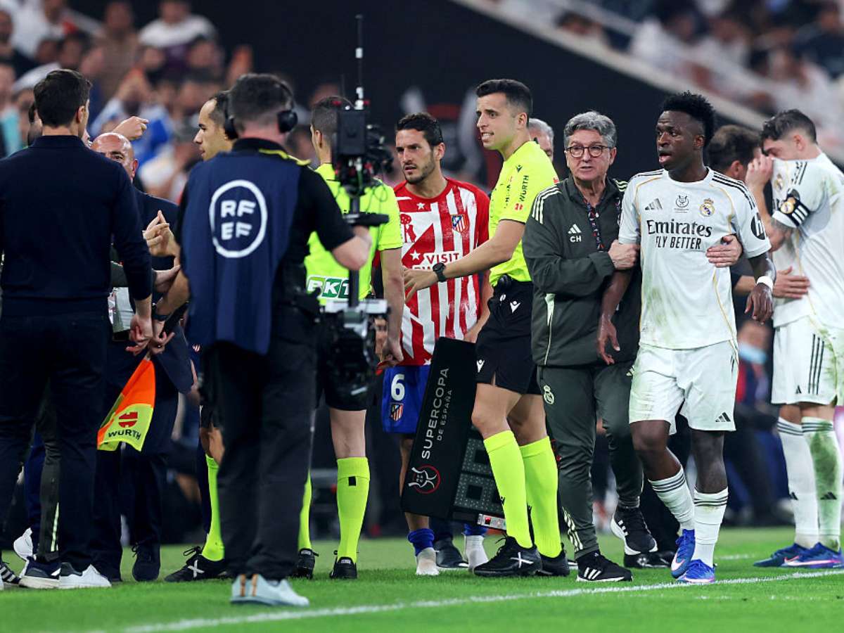Vinícius Júnior protagonizou uma discussão com Diego Simeone ao ser substituído na vitória do Real Madrid sobre o Atlético de Madrid pela Supercopa da Espanha, após provocações do técnico argentino.