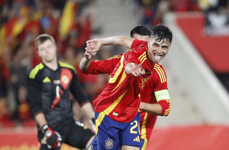 Após isso, a Espanha explorou os lados do campo: direito com Lamine Yamal e o esquerdo com Nico Williams Aos 28, a Fúria ampliou a vantagem. Nico encontrou Pedri dentro da área, o camisa 20 estava livre dentro da área e bateu de primeira no lado direito para fazer o terceiro.