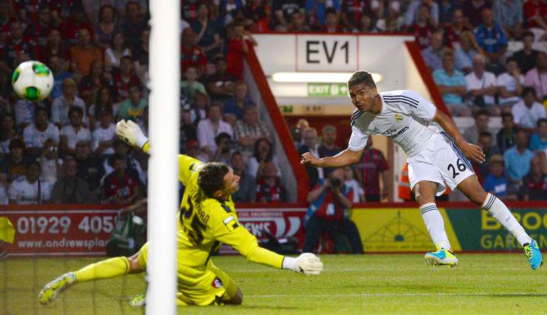 Com dois gols de Cristiano Ronaldo e um do volante brasileiro Casemiro, o Real Madrid goleou o modesto Bournemouth, recém-promovido para a segunda divisão do Campeonato Inglês, por 6 a 0, no Dean Court, a aproximadamente 200 quilômetros de Londres.