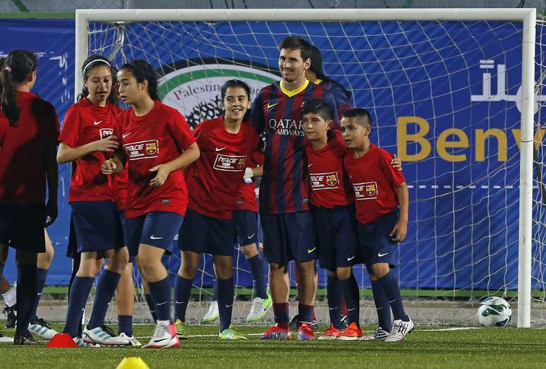 A rotina do Barcelona segue forte. Menos de um dia depois de aplicar uma sonora goleada de 8 a 0 no Santos em jogo amistoso válido pelo Troféu Joan Gamper, o elenco catalão já desembarcou em Israel para o chamado "Tour da Paz", que busca promover a boa relação entre israelenses e palestinos. Os jogadores chegaram a Jerusalém na tarde deste sábado e, além de causar um alvoroço, deram uma aula de futebol, já na Palestina, a cerca de 40 crianças no estádio Municipal de Dura.