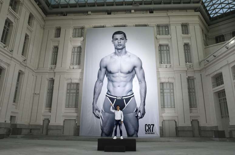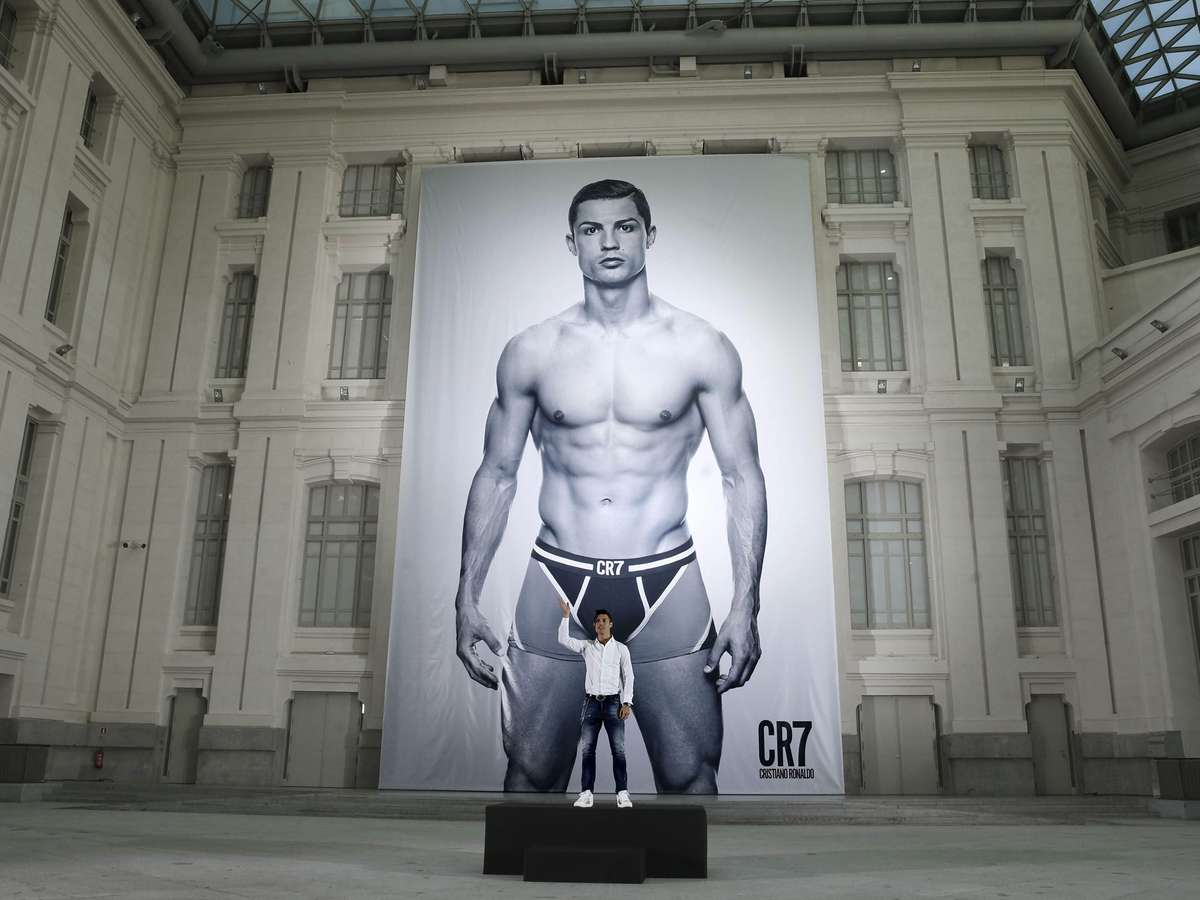 Com pôster gigante, C. Ronaldo lança marca de cueca em palácio na Espanha