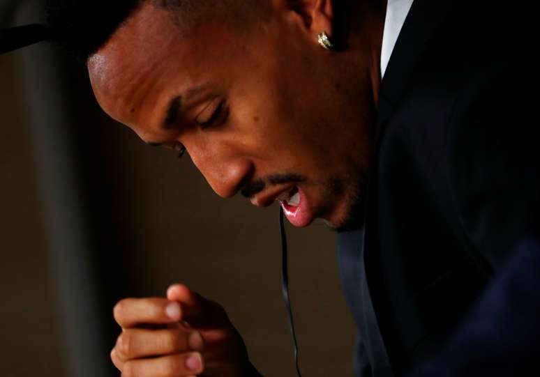 "Desculpe, estou um pouco tonto. É muita emoção", disse o zagueiro/lateral após colocar a mão no rosto e afrouxar a gravata. Por conta disso, a assessoria decidiu dar fim à entrevista após pouco mais de dez minutos de perguntas e respostas - coincidentemente, a última questão foi sobre se gostaria de jogar ao lado de Neymar no clube.