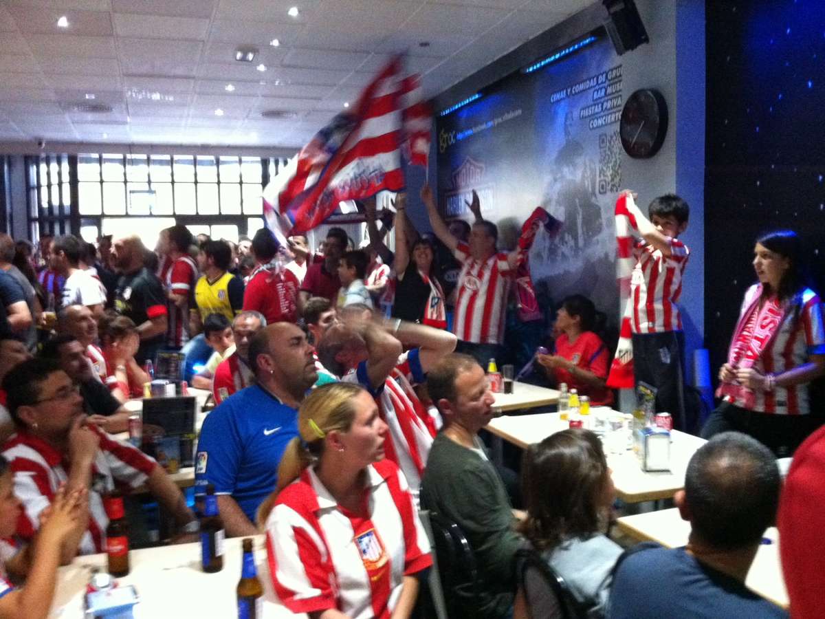 O favoritismo do Barcelona na decisão do Campeonato Espanhol era tão grande que os torcedores do Atlético de Madrid precisaram "se esconder". A reunião principal aconteceu em Viladecans, cidade que fica na região metropolitana de Barcelona. "Nós eramos de uma 'peña' (espécie de torcida organizada fora da cidade-sede do time) de Barcelona, mas os organizadores de lá ficaram doentes. Então mudamos para Viladecans para continuar a assistir os jogos e sofrer com nossa família", afirmou Arce, líder do grupo neste sábado, entre risos.