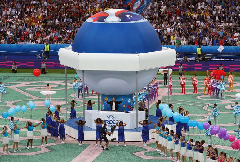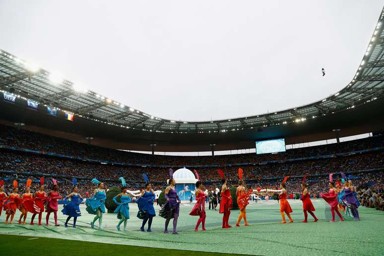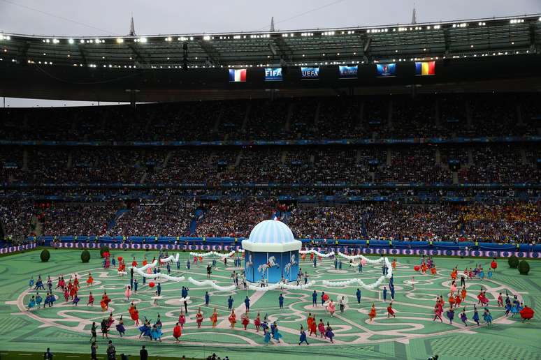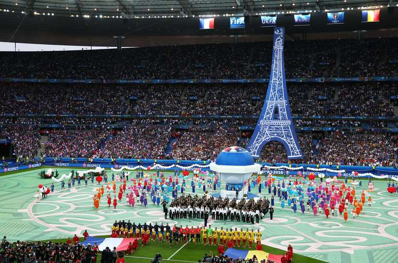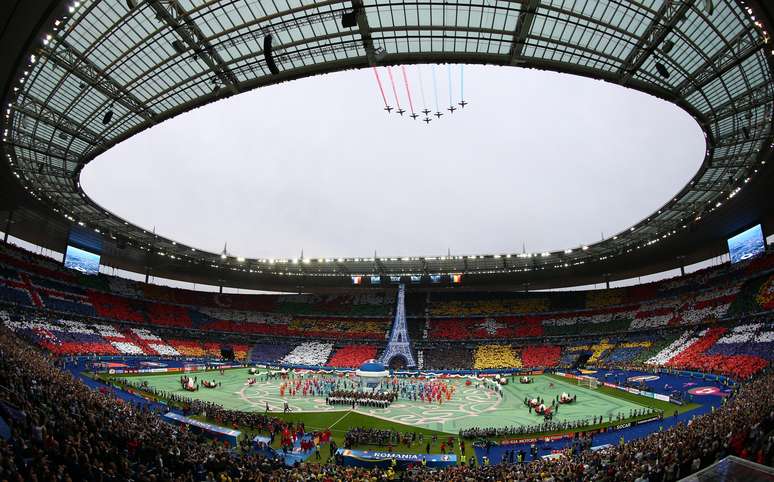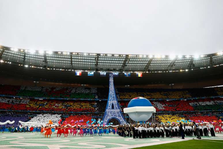 A Eurocopa já foi iniciada! A França recebe a Romênia nesta sexta-feira no Stade de France, em Saint-Denis. Antes, uma festa de abertura, curta, mas bem apresentada no estádio.