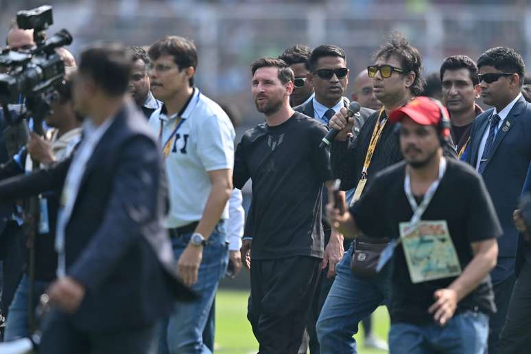 Neste sábado (13), Lionel Messi passeou pelo Estádio Salt Lake, em Calcutá, na Índia, e uma confusão gerou desconforto no argentino. Irritados, os torcedores arremessaram cadeiras da arquibancada no gramado e a equipe de policiamento foi acionada.