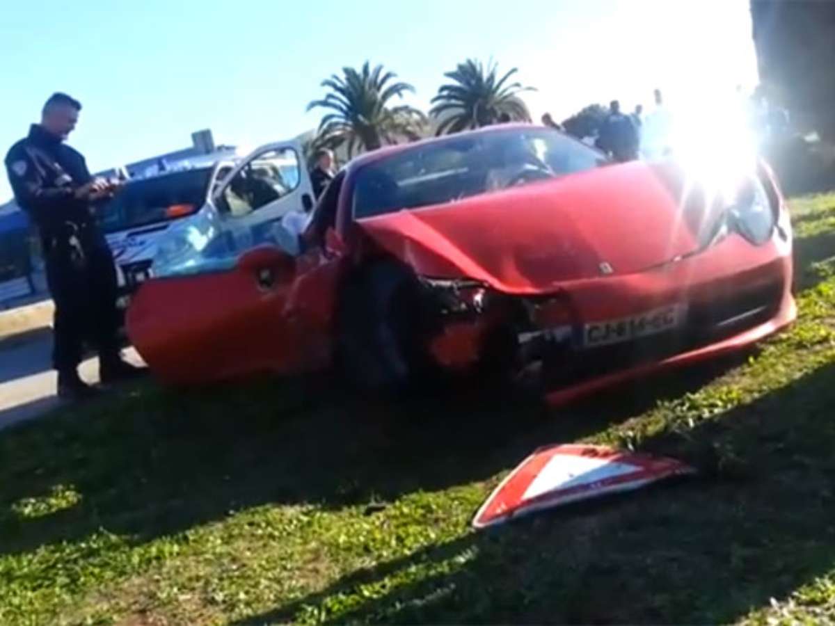 Uma Ferrari 458 Spider foi destruída em um acidente na região de Montpellier, na França, em após colisão contra uma árvore. O carro é de posse do atacante M'Baye Niang, que pertence ao Milan e atualmente joga pelo Montpellier por empréstimo, mas que não estava no veículo no momento da acidente.