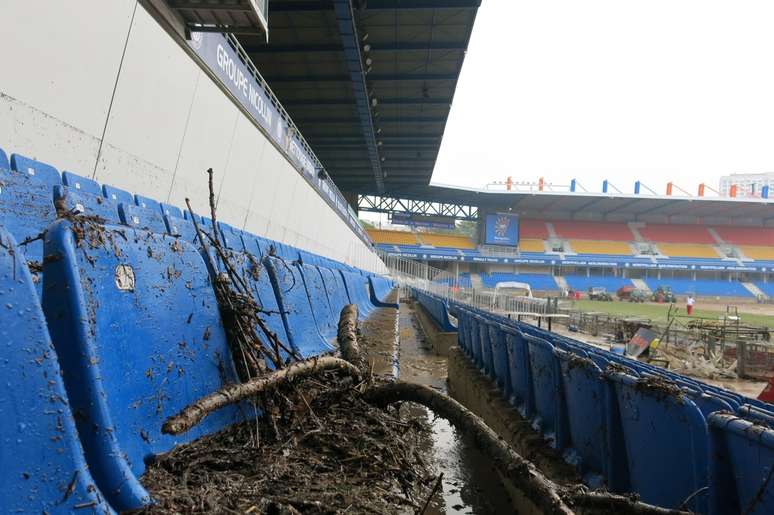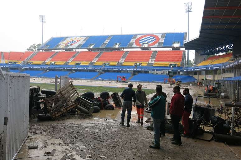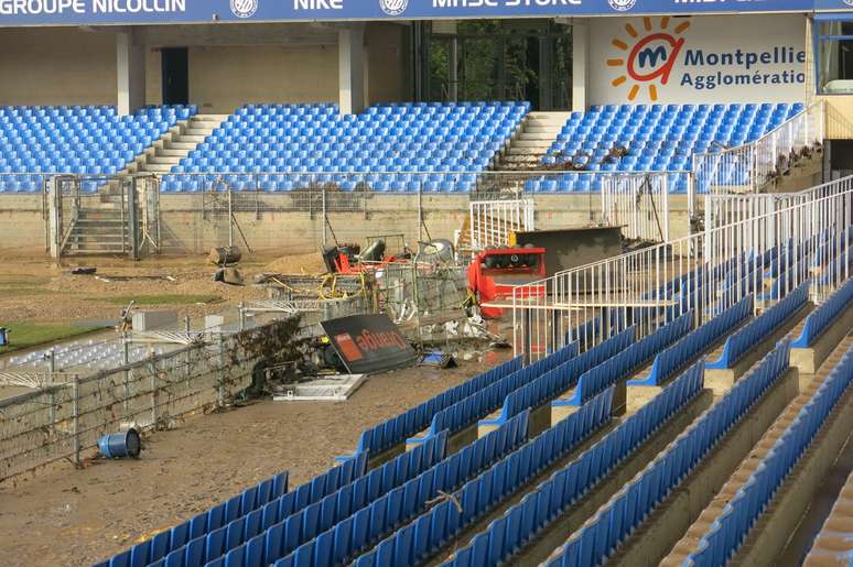 Confira fotos do estrago provocado pelas chuvas no Stade de la Mosson: