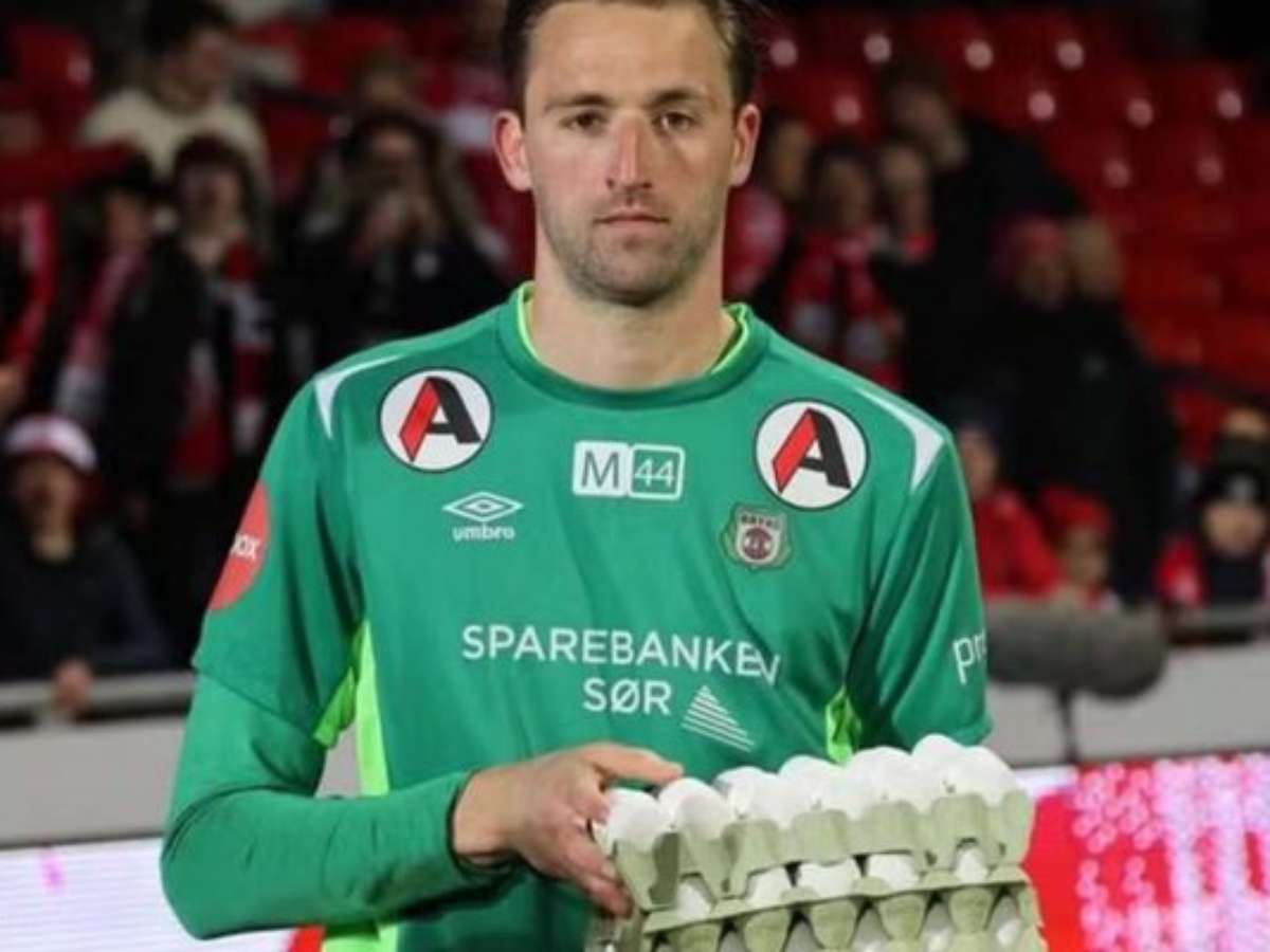 Goleiro destaque no futebol norueguês recebe quatro dúzias de ovos como prêmio