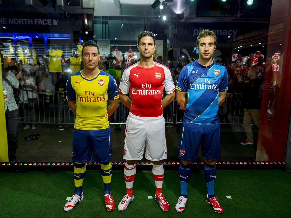 A Puma apresentou, nesta quinta-feira, os novos uniformes do Arsenal para a temporada 2014/2015. Os kits de Home, Away e Cup do clube inglês foram exibidos em uma projeção na água de 20 metros de altura no rio Tâmisa, em Londres, na Inglaterra, com o London Eye de fundo. O responsável pela apresentação foi Arsène Wenger, técnico do Arsenal