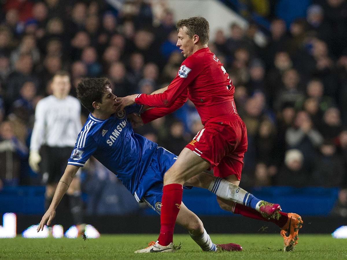 Lance ocorreu perto do final da vitória do Chelsea por 2 a 1 sobre o Liverpool em Stamford Bridge. Lucas não gostou de sofrer um carrinho de Oscar e partiu para cima do companheiro de Seleção. Os dois se abraçaram no fim do jogo selando a paz
