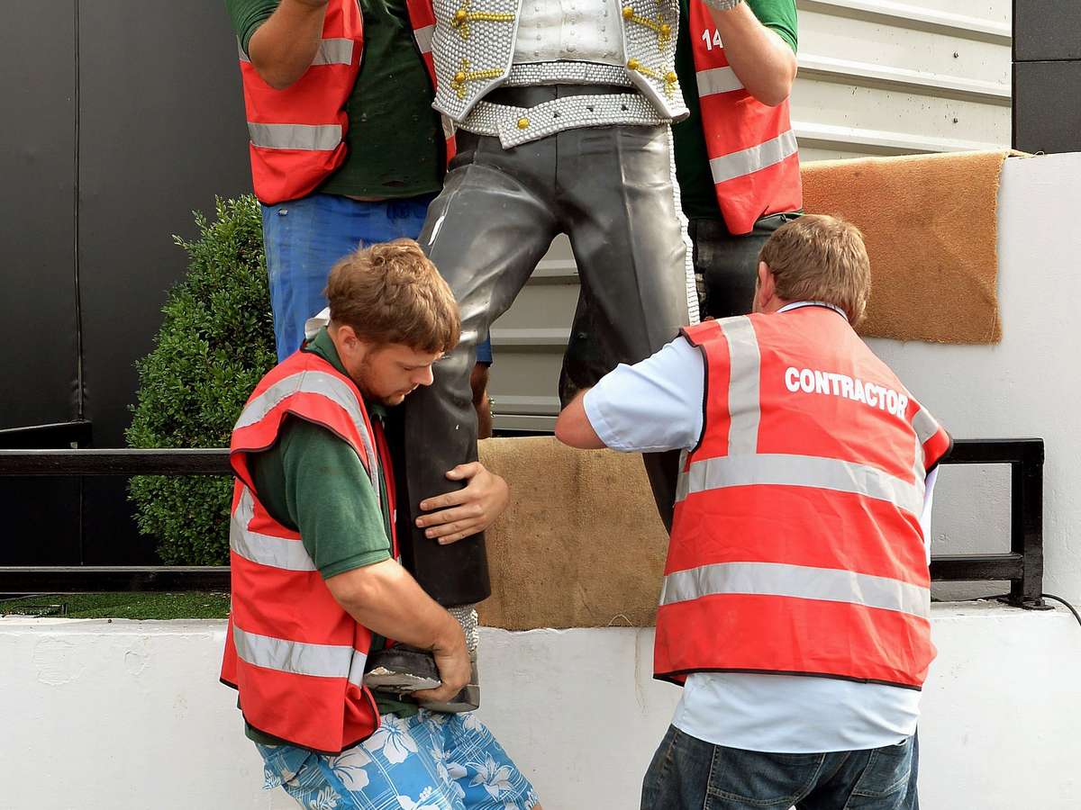 Funcionários desinstalam a estátua, que será devolvida ao antigo dono do Fulham