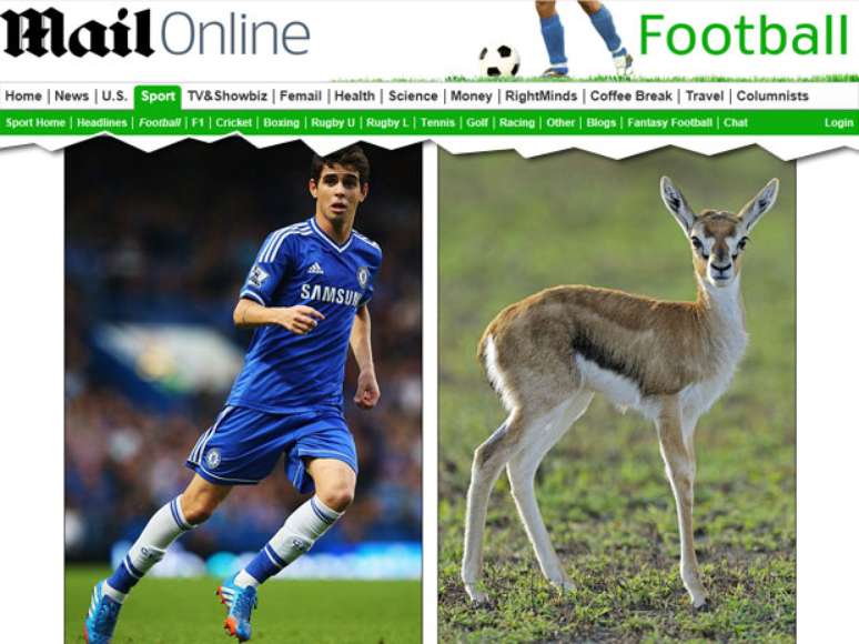 O jornal Daily Mail publicou nesta terça-feira cum comparativo entre representantes do reino animal e alguns dos principais jogadores que atuam no Campeonato Inglês. O brasileiro da lista foi o meia Oscar, do Chelsea, cujas habilidades dentro das quatro linhas fizeram o diário britânico se lembrarem de uma gazela.