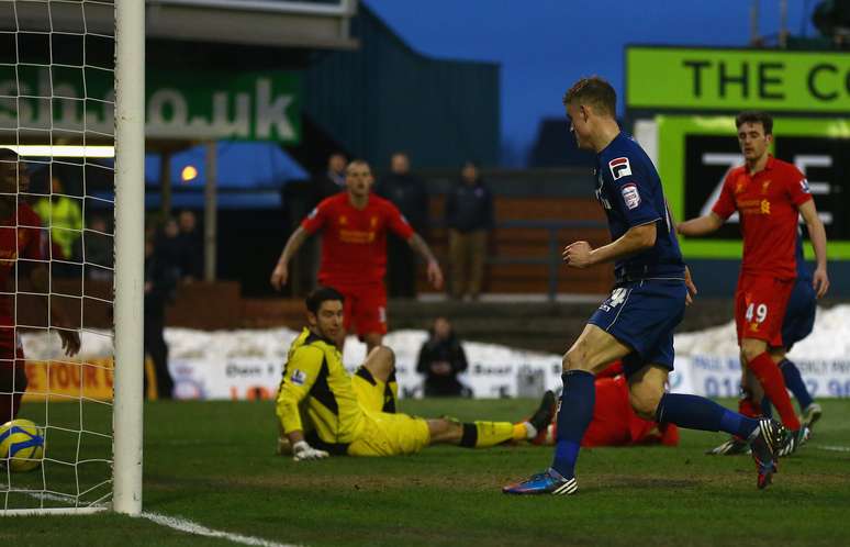 Em jogo válido pela quarta fase da Copa da Inglaterra, o Liverpool deu vexame neste domingo contra o modesto Oldham Athletic, equipe da região da Grande Manchester e que disputa a terceira divisão do Campeonato Inglês. Com direito a falha do goleiro Brad Jones no segundo gol anfitrião, o Liverpool foi superado por 3 a 2 no Boundary Park e acabou eliminado da competição. Mathieu Smith, duas vezes, e Reece Wabara fizeram os gols da equipe da casa, enquanto Luis Suárez e Joe Allen descontaram.