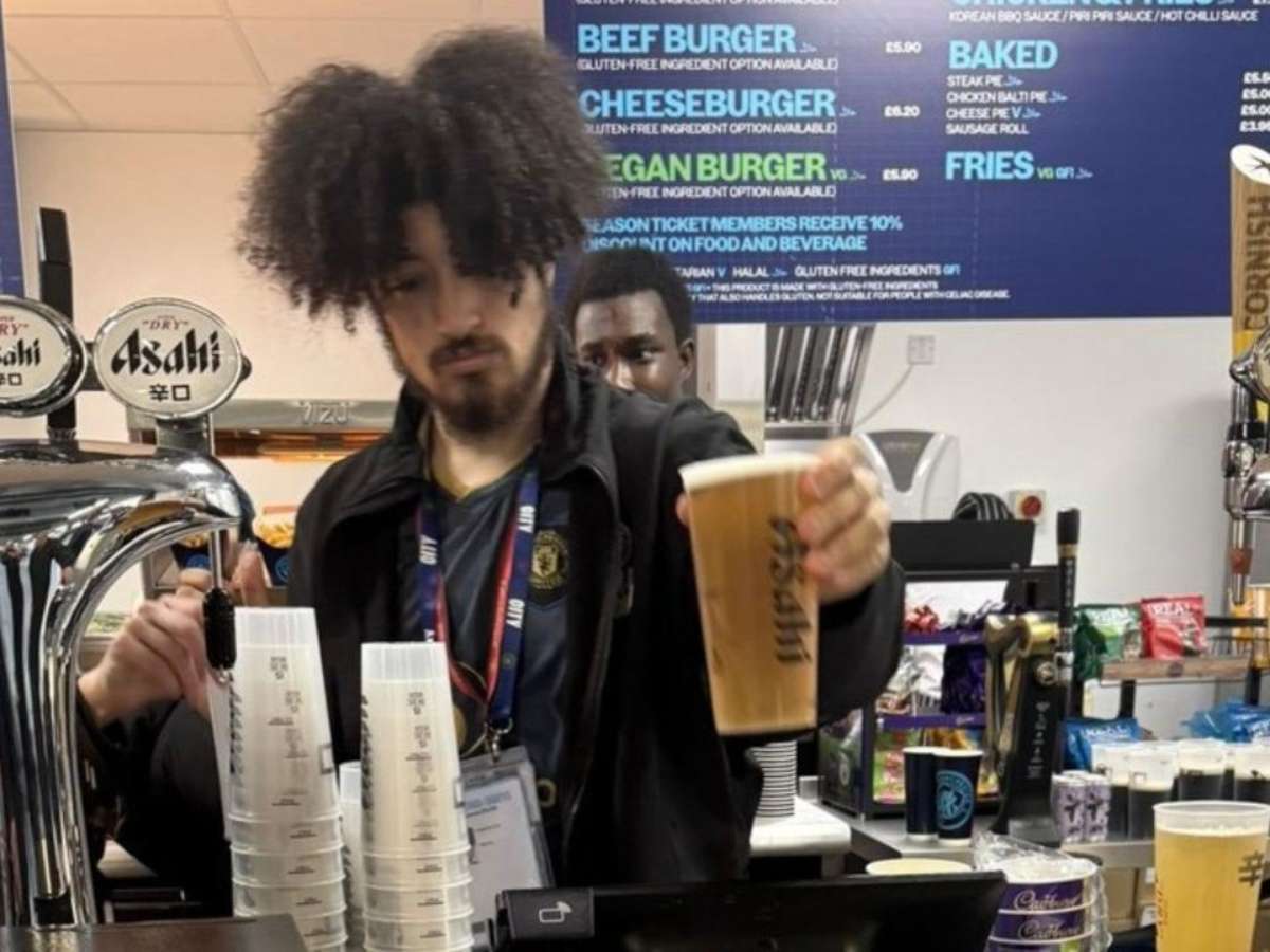 O homem foi flagrado servindo bebidas com o uniforme reserva do United