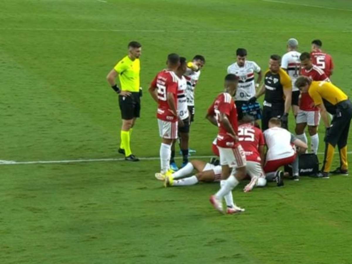 O jogador deixou o campo ainda durante o confronto após um choque de cabeça em disputa com Wendell. A substituição ocorreu por precaução, e o atleta acabou sendo encaminhado imediatamente para exames.
