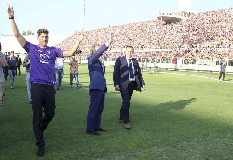 PUBLICIDADE Capa Esportes Futebol Internacional Itália Campeonato Italiano Campeonato Italiano Times Selecione o time para ver as notícias Com 15 mil pessoas no estádio, Fiorentina apresenta Mario Gomez Compartilhar Aos 28 anos, Gomez, custou cerca de 20 milhões de euros (R$ 58 milhões) para a Fiorentina Foto: AP O atacante Mario Gomez foi apresentado oficialmente nesta segunda-feira pela Fiorentina como novo reforço para a temporada 2013/14 do clube italiano Foto: AP Mais de 15 mil torcedores compareceram ao Estádio Artemio Franchi para recepcionar o alemão Foto: AP Aos 28 anos, Gomez, custou cerca de 20 milhões de euros (R$ 58 milhões) para a Fiorentina Foto: AP Na última temporada, o atacante perdeu espaço no Bayern para o croata Mandzukic, por isso preferiu trocar de ares Foto: AP Centroavante assinou contrato longo com a equipe italiana, com validade até junho de 2017 Foto: AP Compartilhar Publicidade Compartilhar TAGS Campeonato Italiano Esportes Futebol Futebol Internacional Itália Publicidade