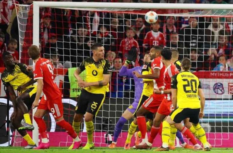 Desde o primeiro minuto, o Bayern se impôs e dominou o arquirrival, com rápidas transições ofensivas e intensidade. Assim, na primeira chegada, Olive roubou a bola de Süle na área e deixou o zagueiro no chão. No entanto, demorou a finalizar e foi bloqueado pela defesa aurinegra. Em seguida, Kimmich arriscou de fora da área, entretanto Kobel colocou para escanteio.