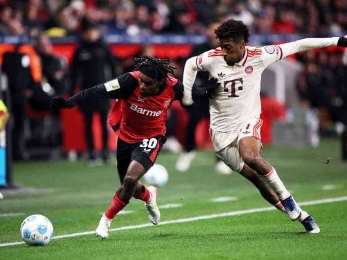 No primeiro tempo, o Leverkusen fez um jogo bem mais efetivo do que o Bayern, que não conseguia sair da marcação do time da casa e viu o rival não seguir para o intervalo em vantagem por sorte. Afinal, o Leverkusen acertou duas na trave, com Frimpong e Tella. Além disso, Wirtz, endiabrado pela esquerda, quase marcou num chute do meio de campo.