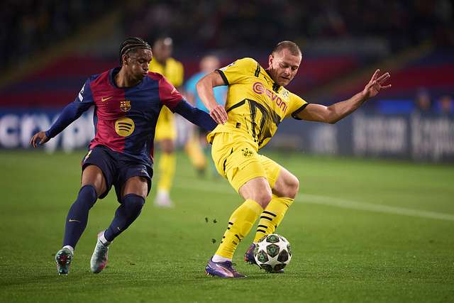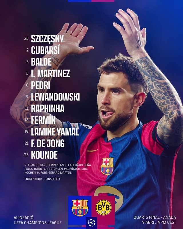 BARCELONA ENCAMINHA VAGA NA SEMIFINAL COM MASSACRE SOBRE O DORTMUND | Domínio catalão total nos primeiros 90 minutos das quartas da Champions League, no Olímpico Lluís Companys. Com gols de Raphinha, Lewandowski duas vezes e Lamine Yamal, os culés praticamente garantiram a vaga na semifinal do torneio europeu. O Borussia Dortmund tentou esboçar reações nos minutos finais de cada etapa, mas não conseguiu desmobilizar o bloqueio blaugrana. Agora, os times se enfrentam novamente no jogo de volta, em Dortmund, na Alemanha, às 16h da próxima terça-feira, 15. O Barcelona pode perder por até 3 gols de diferença e ainda assim avança à próxima fase.