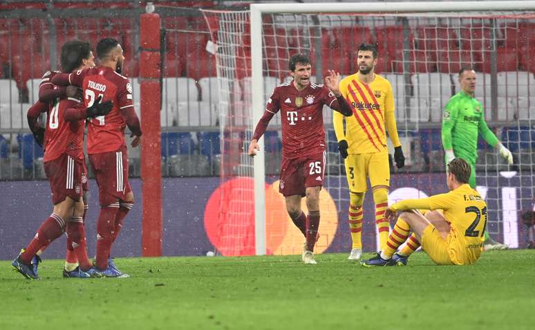 Mesmo sem público no estádio, por causa do aumento de casos de covid na região da Bavária, o Barcelona não conseguiu equilibrar a disputa com o Bayern. No primeiro tempo, a vantagem alemã já era de 2 a 0, com gols de Müller, de cabeça, e Sané, com uma bomba de fora da área. Na etapa final, Musiala definiu o placar.