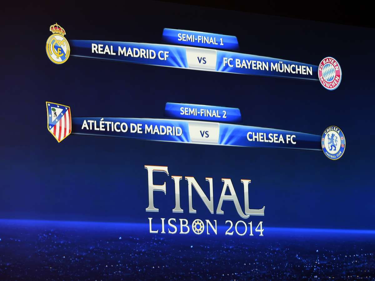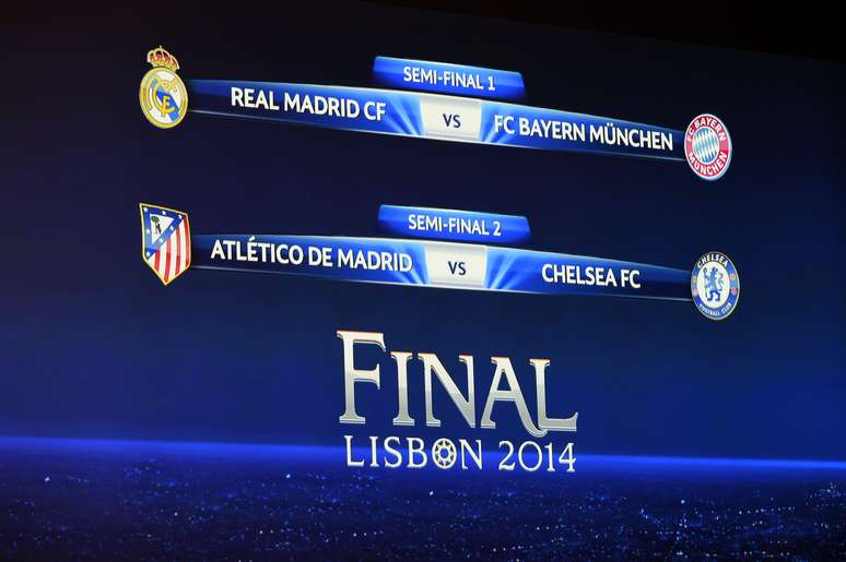 O sorteio das semifinais da Liga dos Campeões da Europa, realizado nesta sexta-feira, reservou dois confrontos bastante equilibrados: Real Madrid x Bayern de Munique e Atlético de Madrid x Chelsea. Os dois espanhóis, coincidentemente, farão a primeira perna dos confrontos em casa.